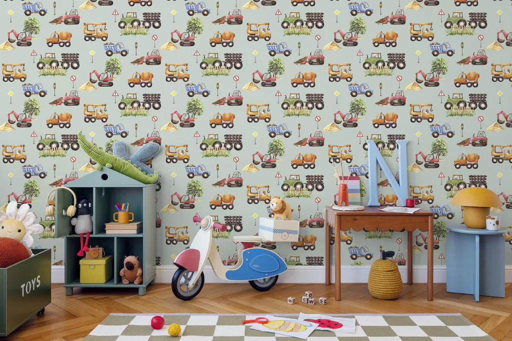 Autós zöld vlies gyerektapéta Sweet Dreams/UGEPA N06909