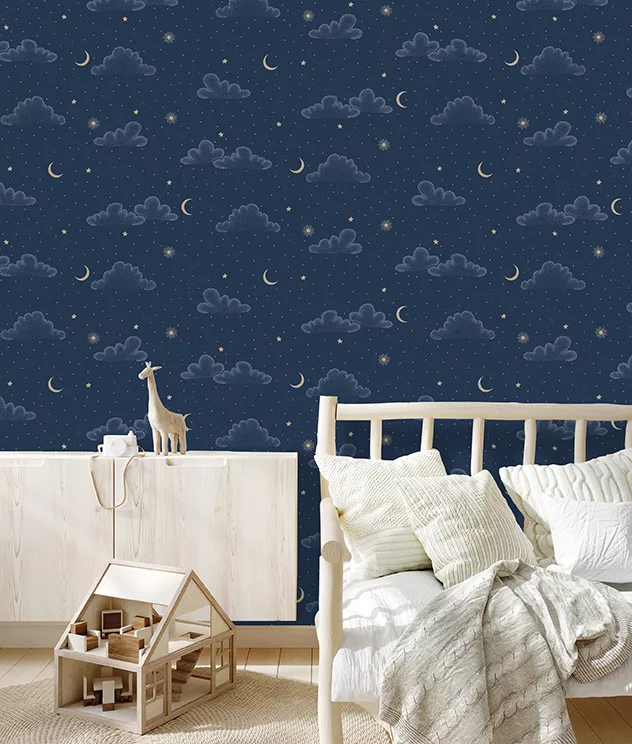 A minták között megjelennek kedves, álomszerű motívumok – felhők, csillagok, állatfigurák és pasztell tónusú dekorációk –, amelyek inspiráló és barátságos hangulatot biztosítanak a gyerekszobában.