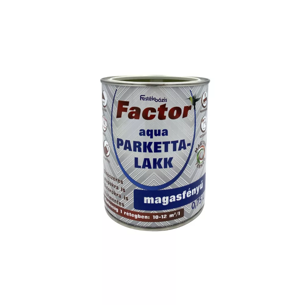 Alkalmazás: A FACTOR Aqua Parkettalakk polyuretan és akrilgyanta bázisú, beltéri felhasználásra ajánlott lakk. Oldószer- és formaldehidmentes, szagtalan, vízzel hígítható. Egykomponensű, könnyen felhordható, gyorsan szárad, ezért a lakkozott felület hamar igénybe vehető. Parketta és egyéb beltéri, fából készült felületek bútor, tornaszerek, lambéria, gerenda lakkozására alkalmas. Előzőleg már lakkozott, festett felületeket is átvonhatunk vele (oldószereseket is), valamint a VALMOR Flexibilis és Csúszásmentes padlófestékeinket is lakkozhatjuk. Ásványi felületek (tégla, kő, vakolat, beton, cserép) valamint tapéta, egyéb papír, gipszkarton lakkjellegű bevonására is alkalmazható. Csúszásmentes gresslap takaríthatóvá tehető használatával.
