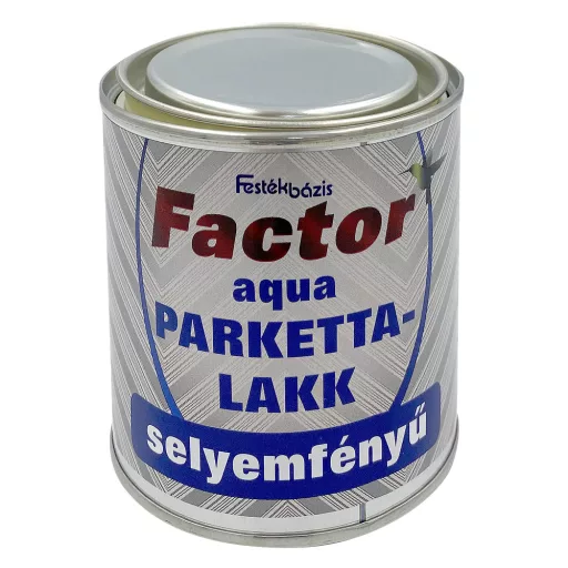 Alkalmazás: A FACTOR Aqua Parkettalakk polyuretan és akrilgyanta bázisú, beltéri felhasználásra ajánlott lakk. Oldószer- és formaldehidmentes, szagtalan, vízzel hígítható. Egykomponensű, könnyen felhordható, gyorsan szárad, ezért a lakkozott felület hamar igénybe vehető. Parketta és egyéb beltéri, fából készült felületek bútor, tornaszerek, lambéria, gerenda lakkozására alkalmas. Előzőleg már lakkozott, festett felületeket is átvonhatunk vele (oldószereseket is), valamint a VALMOR Flexibilis és Csúszásmentes padlófestékeinket is lakkozhatjuk. Ásványi felületek (tégla, kő, vakolat, beton, cserép) valamint tapéta, egyéb papír, gipszkarton lakkjellegű bevonására is alkalmazható. Csúszásmentes gresslap takaríthatóvá tehető használatával.