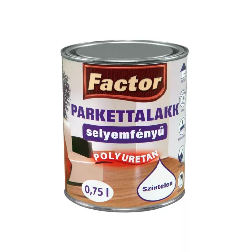 Alkalmazás: A FACTOR Parkettalakk elsősorban parketta, de egyéb kemény fafelületek, bútor, íróasztal, iskolabútor, tornaszerek lakkozására szolgál. Ecseteléssel és szórással egyaránt felhordható. A lakkozott felület rendkívül kopásálló, kemény és csillogó. Egykomponensű, ellenálló termék, ami a felhasználás szempontjából, kiemelkedő előnyt jelent.