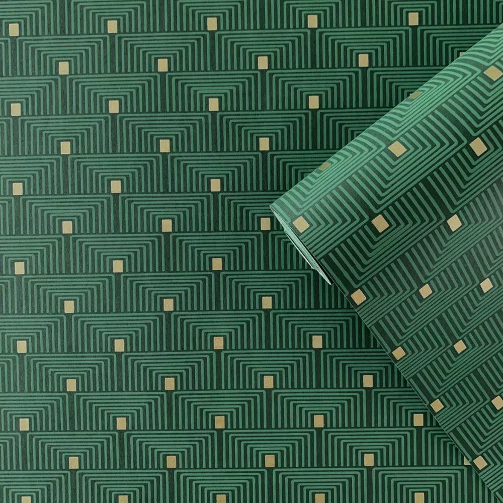 Boutique/Galerie F-PL3008 Geometriai mintás zöld színárnyalatú vlies tapéta