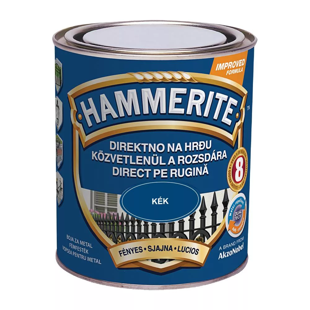 A Hammerite közvetlenül rozsdára festék kék fényes 0,75 l ideális választás a rozsdás felületek felújításához.