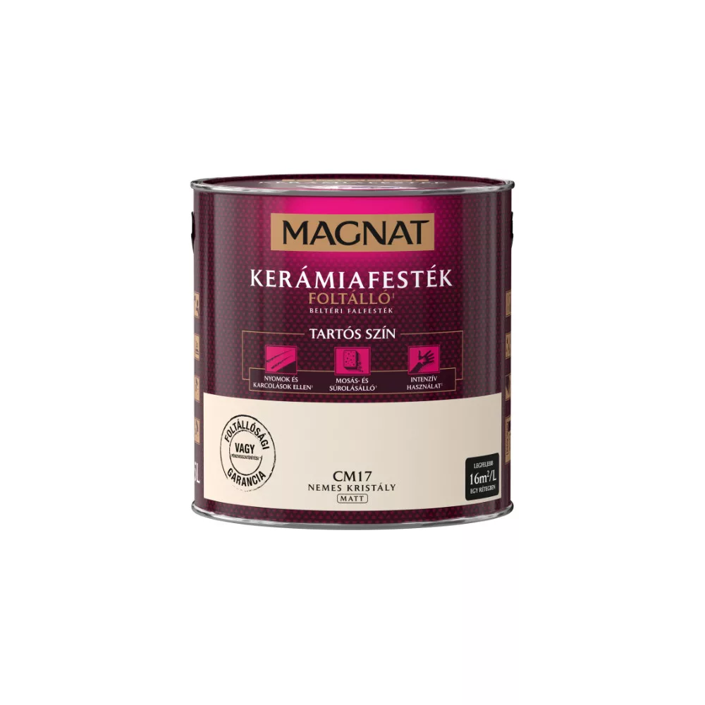 A MAGNAT KERÁMIAFESTÉK a cement, cement-mész, gipsz, gipsz-karton alapú falak és plafonok, valamint üvegszálas tapéták dekoratív-védő festéséhez alkalmazandó. Ugyanakkor alkalmazható fa, fa eredetű és fém beltéri felületek festéséhez.