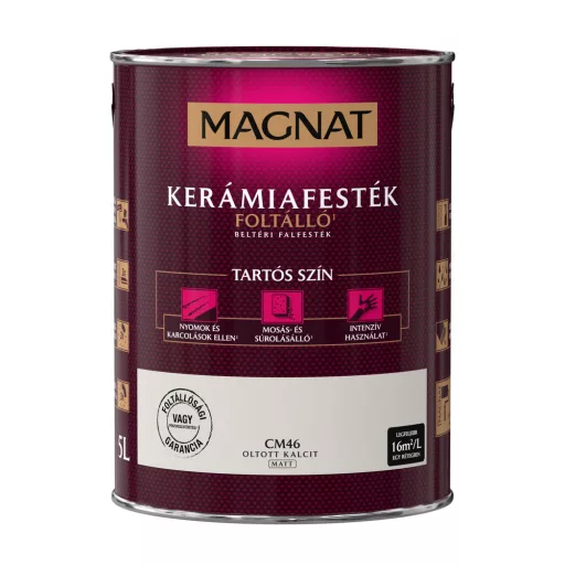 Magnat Kerámiafesték, mely ellenáll nyomoknak és karcolásoknak, lemosásnak és súrolásnak, és az intenzív használatnak.