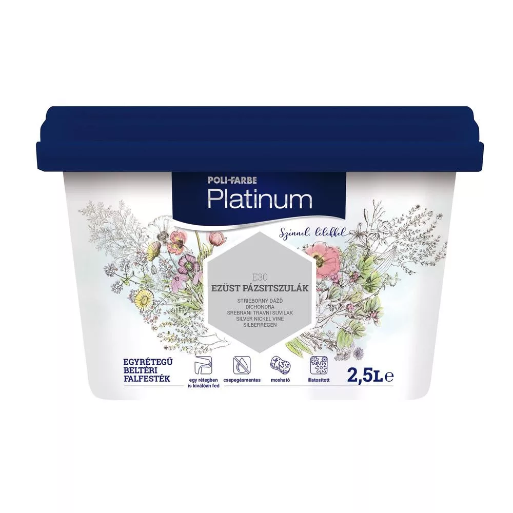 Polifarbe Platinum színes beltéri falfesték ezüst pázsitszulák színben 2,5l