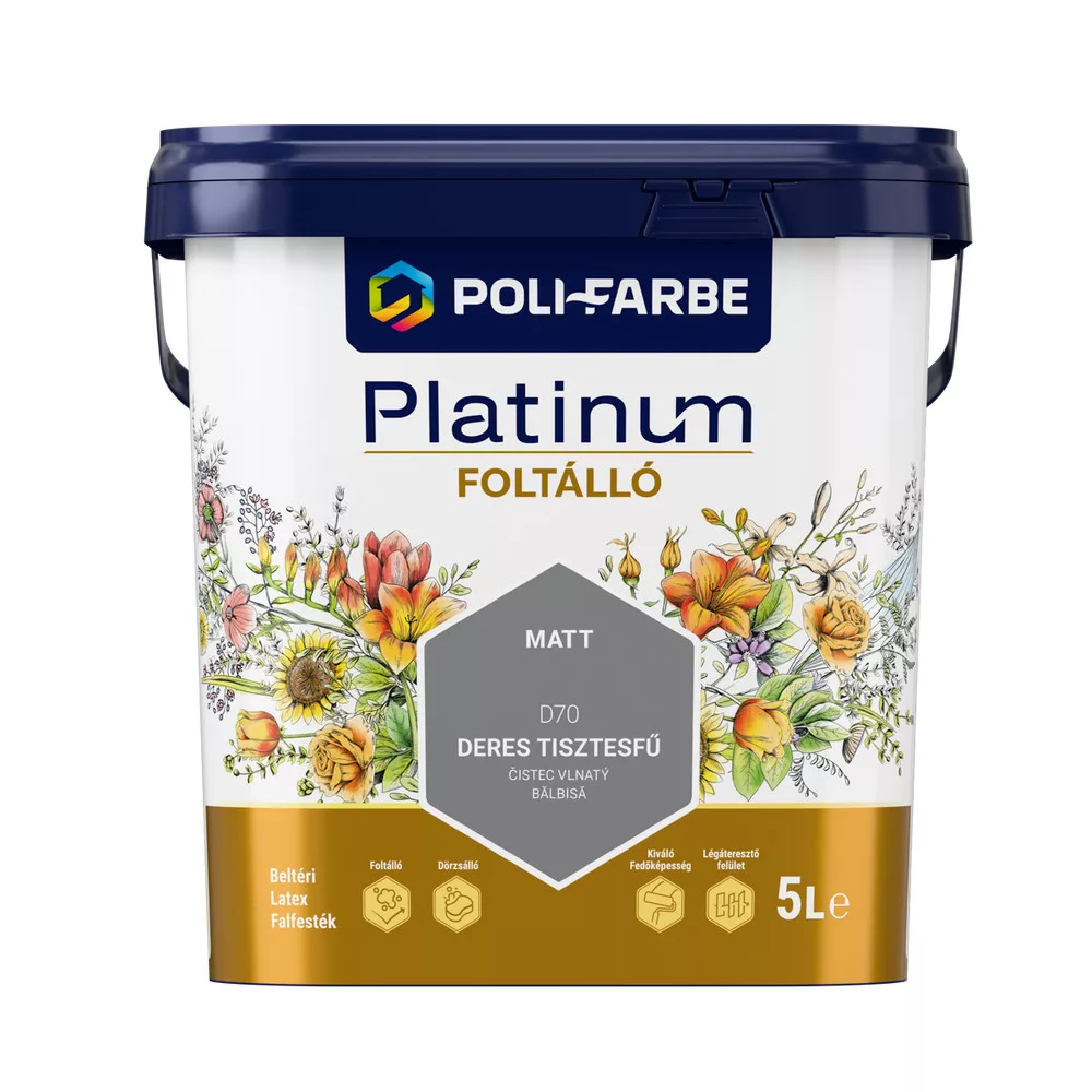 Poli-Farbe Platinum Foltálló beltéri latex falfesték  Deres tisztesfű D70 5l