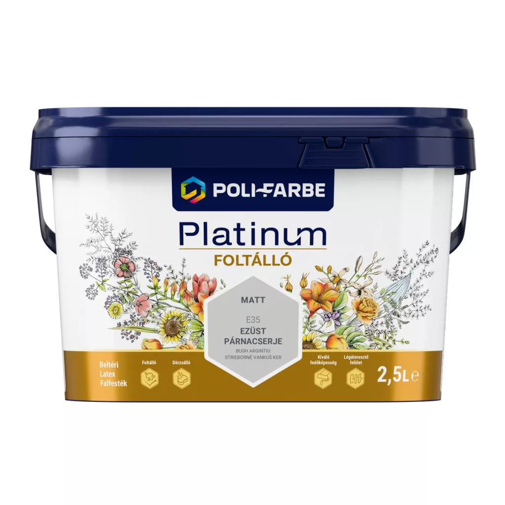 A Poli-Farbe Platinum egy foltálló, dörzsálló, mosható falfesték, amely: