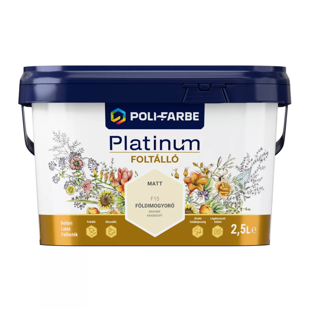 Poli-Farbe Platinum Foltálló földimogyoró színű 2,5l beltéri latex falfesték