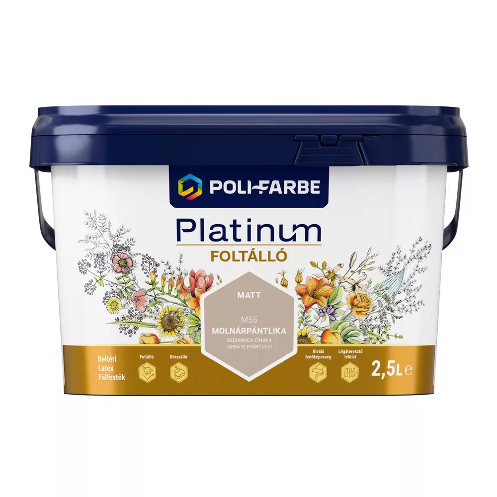 Poli-Farbe Platinum Foltálló beltéri latex falfesték  Molnárpántlika M55 2,5l