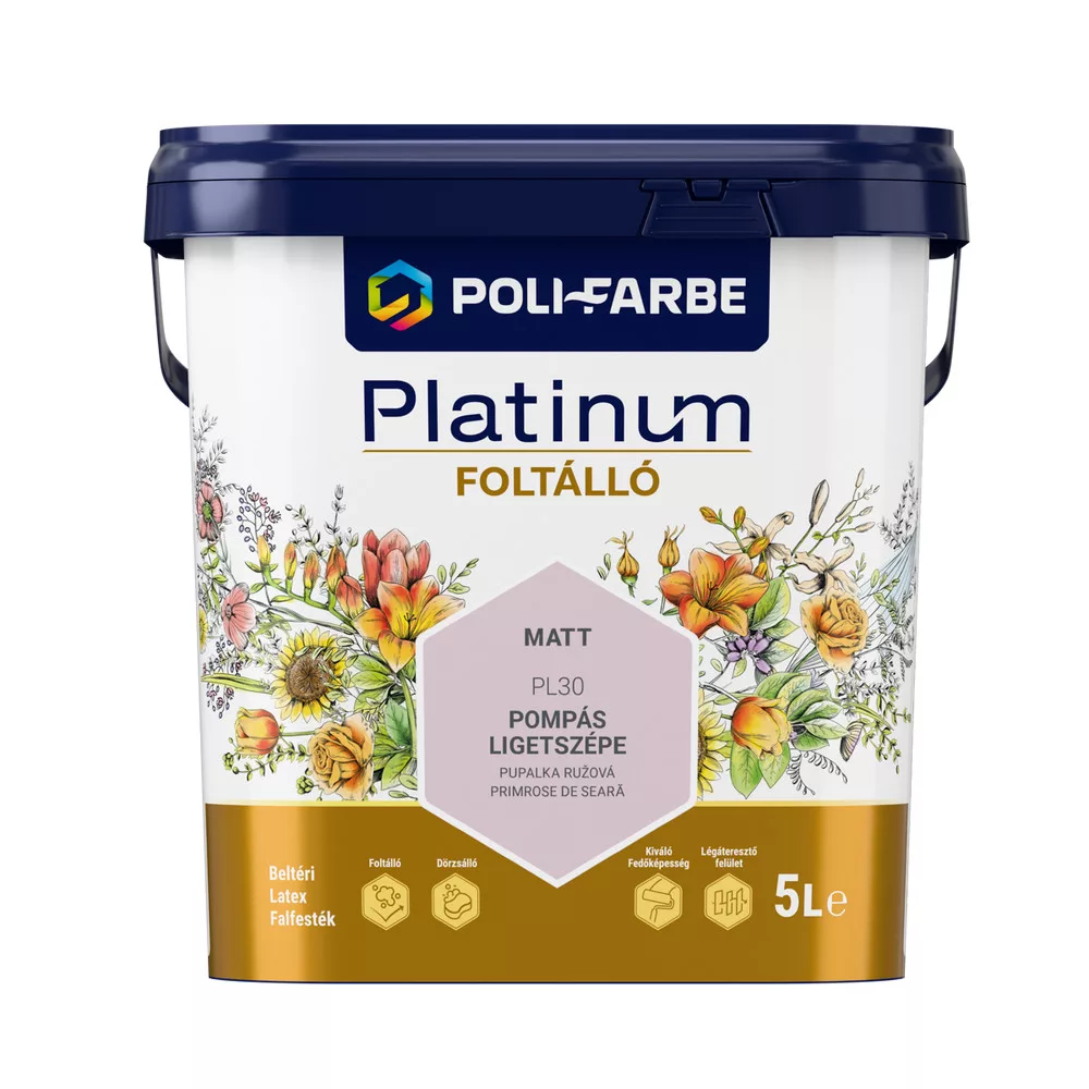 Poli-Farbe Platinum Foltálló beltéri latex falfesték  Pompás ligetszépe PL30 5l