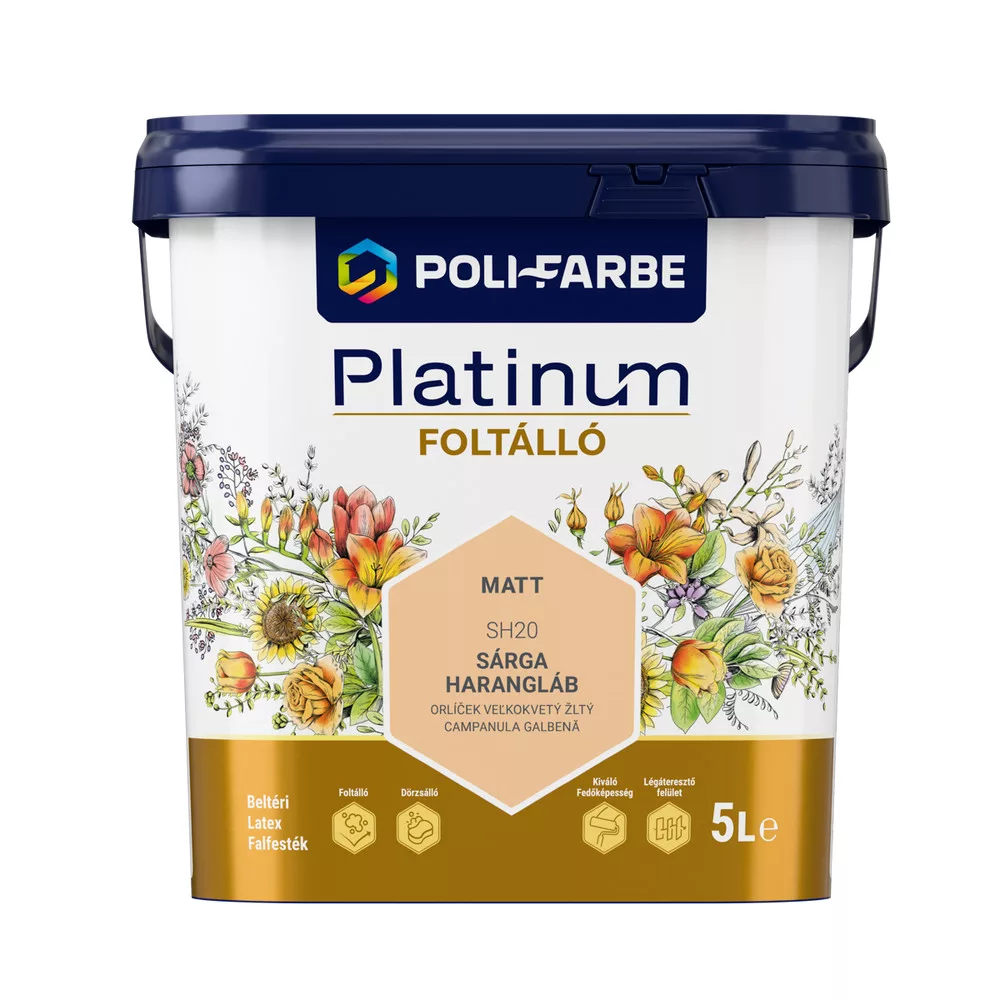 Poli-Farbe Platinum Foltálló Sárga harangláb SH20 5l beltéri latex falfesték