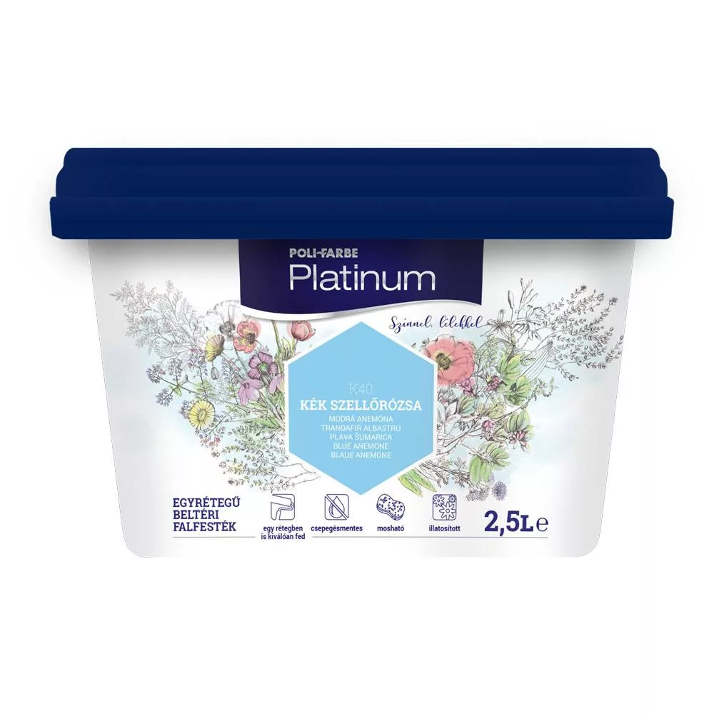 Polifarbe Platinum színes beltéri falfesték kék szellőrózsa színben 2,5l
