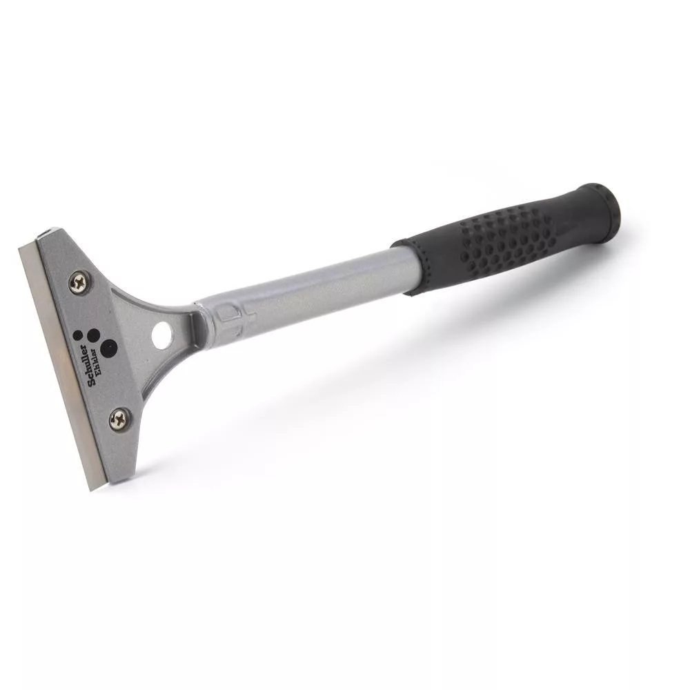 Univerzális kaparó fémből, műanyag markolattal, két süllyesztett csavarral a penge rögzítéséhez