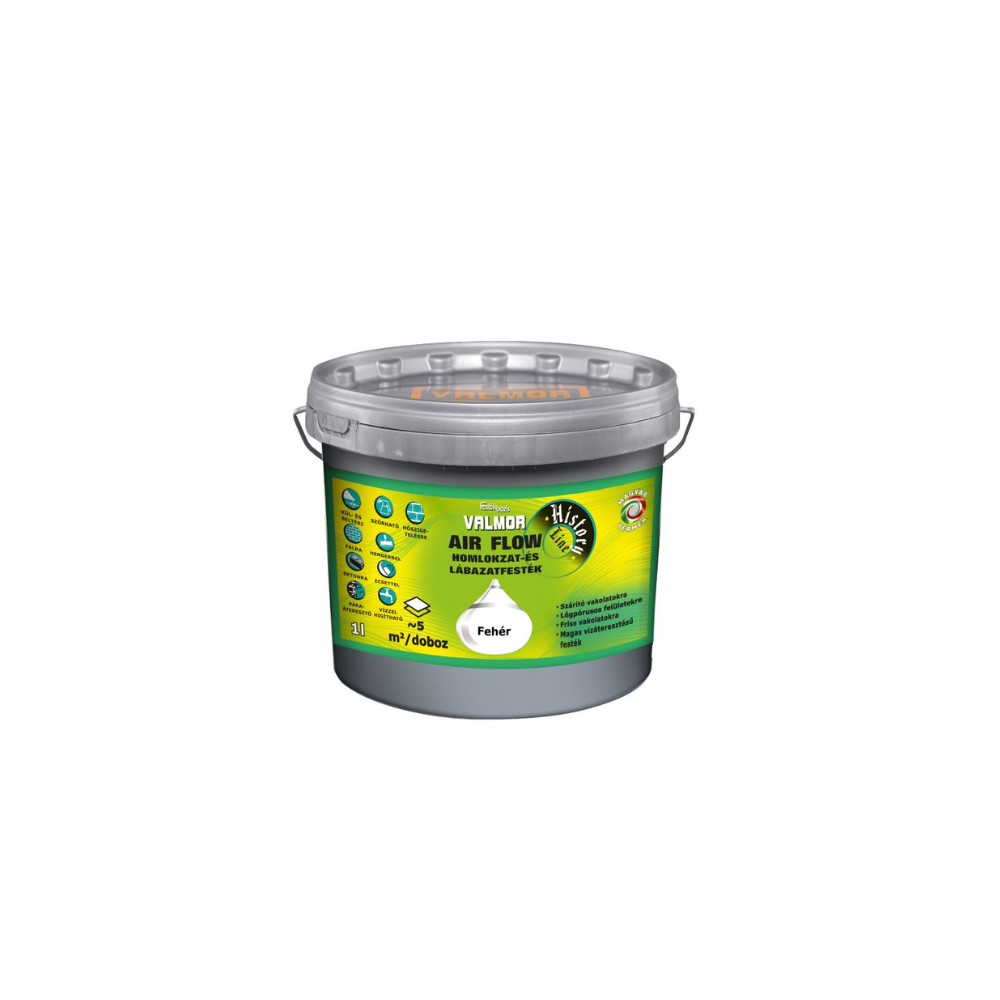 A VALMOR AIR FLOW Homlokzat és Lábazatfesték egy kimagaslóan magas páraáteresztő képességgel rendelkező, környezettudatos, jó fedőképességű, módosított vinil kötőanyagú falfesték. Időjárásálló, szennyeződésnek ellenálló, UV álló. Felhordható normál, lábazati, szárító, páraáteresztő, WTA vakolatokra, betonra, ásványi és lélegző hőszigetelő rendszerekre. A VALMOR Air Flow Homlokzat és Lábazatfesték különleges összetételének köszönhetően a fal természetes légzését nem gátolja, magas nedvességtartalmú vakolatra is felvihető. Kimondottan alkalmas csapó eső elleni védelemre, lábazatok festésére. Ideális a frissen készült új falak, valamint régi épületek rendszeres vizesedési problémával küzdő falazatainak bevonására. Különösen ajánlott a műemlékvédelem területén, a külső illetve belső felújítási munkálatokhoz. A meglévő homlokzati vakolatok struktúráját megtartva könnyen felhordható. MSZ EN 1062-3:2009 szerint magas víz áteresztésű, MSZ EN ISO 77832:2000 szerint magas vízgőz áteresztő képességű.