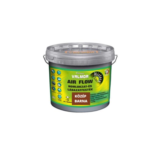 A VALMOR AIR FLOW Homlokzat és Lábazatfesték egy kimagaslóan magas páraáteresztő képességgel rendelkező, környezettudatos, jó fedőképességű, módosított vinil kötőanyagú falfesték. Időjárásálló, szennyeződésnek ellenálló, UV álló. Felhordható normál, lábazati, szárító, páraáteresztő, WTA vakolatokra, betonra, ásványi és lélegző hőszigetelő rendszerekre. A VALMOR Air Flow Homlokzat és Lábazatfesték különleges összetételének köszönhetően a fal természetes légzését nem gátolja, magas nedvességtartalmú vakolatra is felvihető. Kimondottan alkalmas csapó eső elleni védelemre, lábazatok festésére. Ideális a frissen készült új falak, valamint régi épületek rendszeres vizesedési problémával küzdő falazatainak bevonására. Különösen ajánlott a műemlékvédelem területén, a külső illetve belső felújítási munkálatokhoz. A meglévő homlokzati vakolatok struktúráját megtartva könnyen felhordható. MSZ EN 1062-3:2009 szerint magas víz áteresztésű, MSZ EN ISO 77832:2000 szerint magas vízgőz áteresztő képességű.