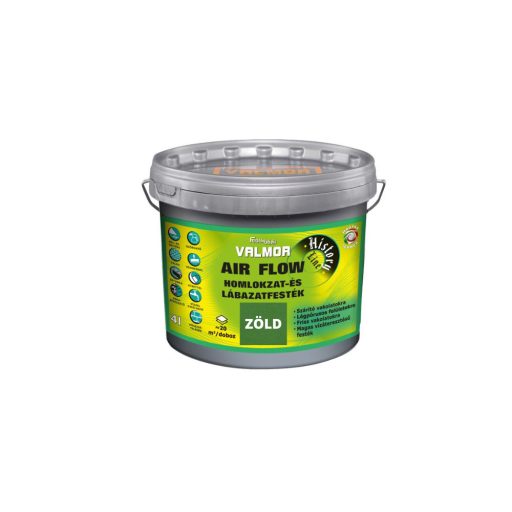 A VALMOR AIR FLOW Homlokzat és Lábazatfesték egy kimagaslóan magas páraáteresztő képességgel rendelkező, környezettudatos, jó fedőképességű, módosított vinil kötőanyagú falfesték. Időjárásálló, szennyeződésnek ellenálló, UV álló. Felhordható normál, lábazati, szárító, páraáteresztő, WTA vakolatokra, betonra, ásványi és lélegző hőszigetelő rendszerekre. A VALMOR Air Flow Homlokzat és Lábazatfesték különleges összetételének köszönhetően a fal természetes légzését nem gátolja, magas nedvességtartalmú vakolatra is felvihető. Kimondottan alkalmas csapó eső elleni védelemre, lábazatok festésére. Ideális a frissen készült új falak, valamint régi épületek rendszeres vizesedési problémával küzdő falazatainak bevonására. Különösen ajánlott a műemlékvédelem területén, a külső illetve belső felújítási munkálatokhoz. A meglévő homlokzati vakolatok struktúráját megtartva könnyen felhordható. MSZ EN 1062-3:2009 szerint magas víz áteresztésű, MSZ EN ISO 77832:2000 szerint magas vízgőz áteresztő képességű.